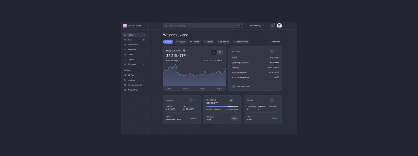 Send manual and automatic invoices, accept flexible payment methods, and manage customer details right from your Mercury account.